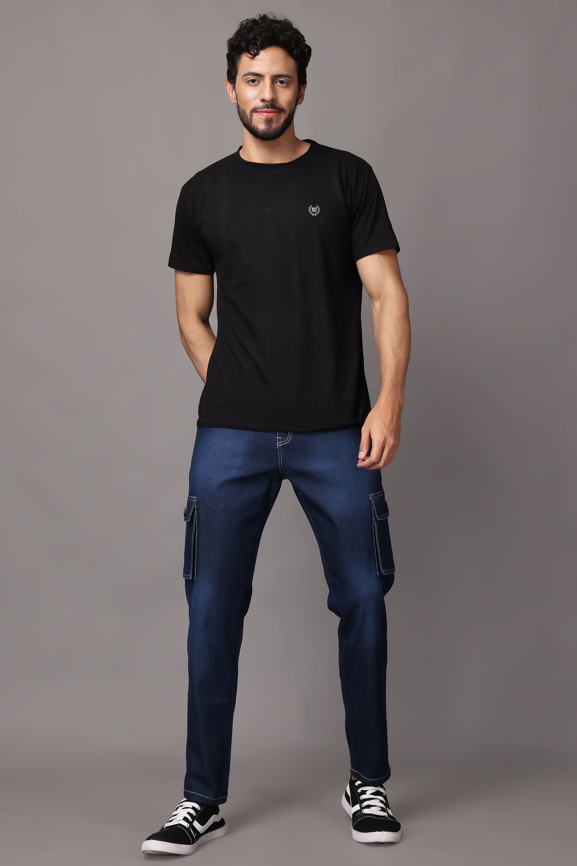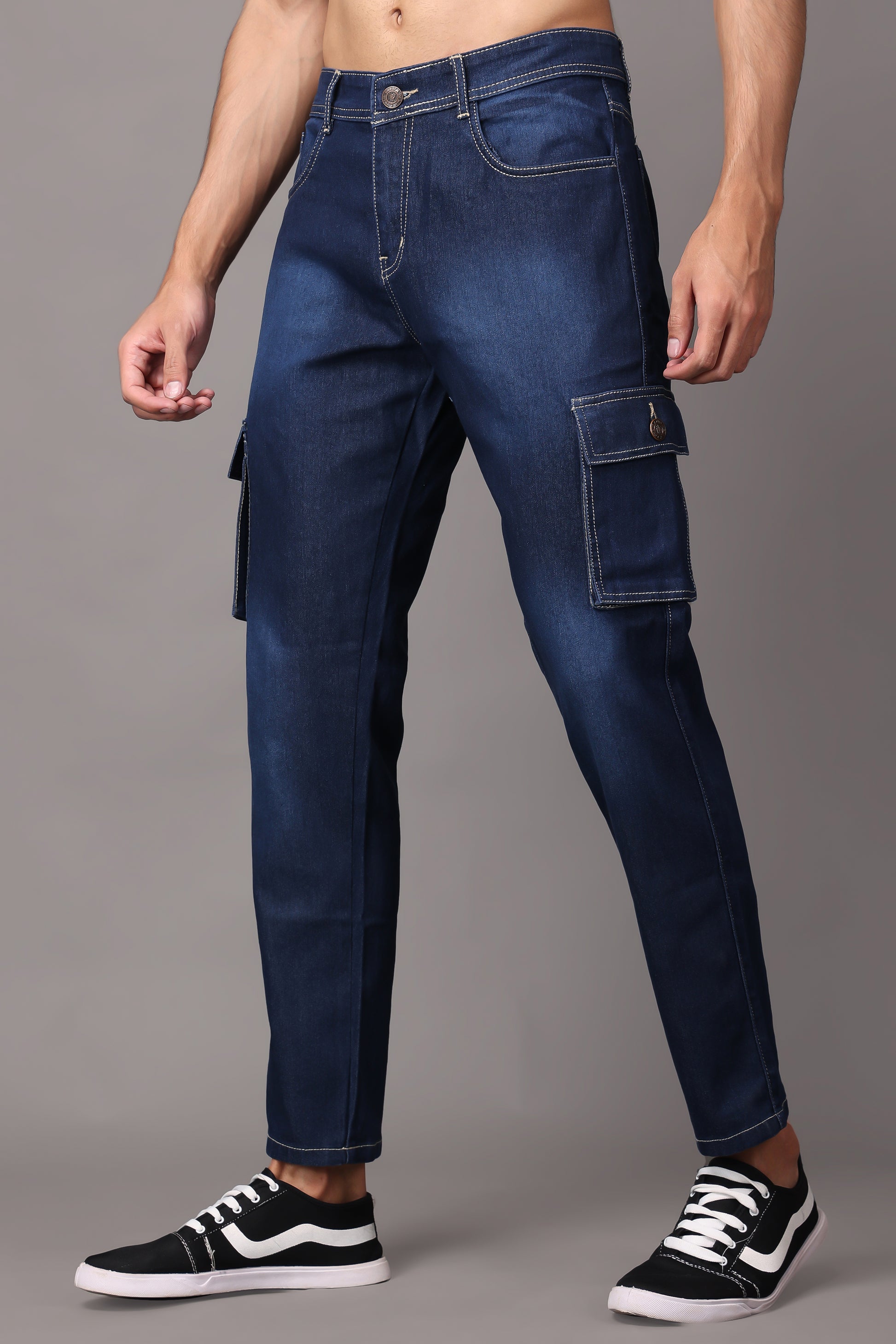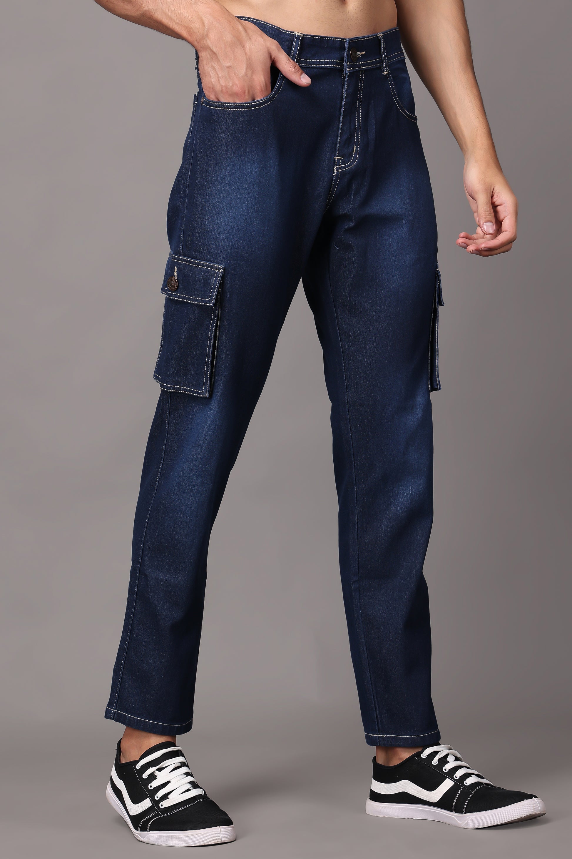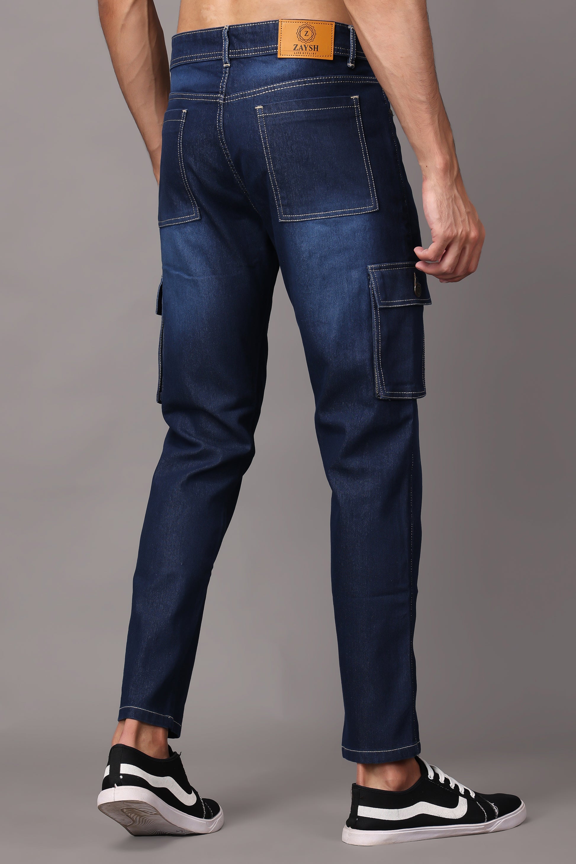 ZAYSH Men Regular fit Mid Rise Blue Cargo Pants (HCAR-BP-DEN-05)
