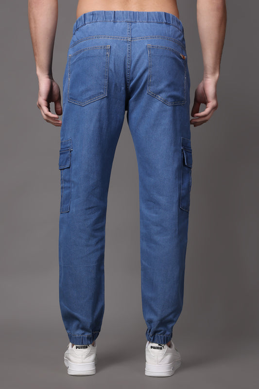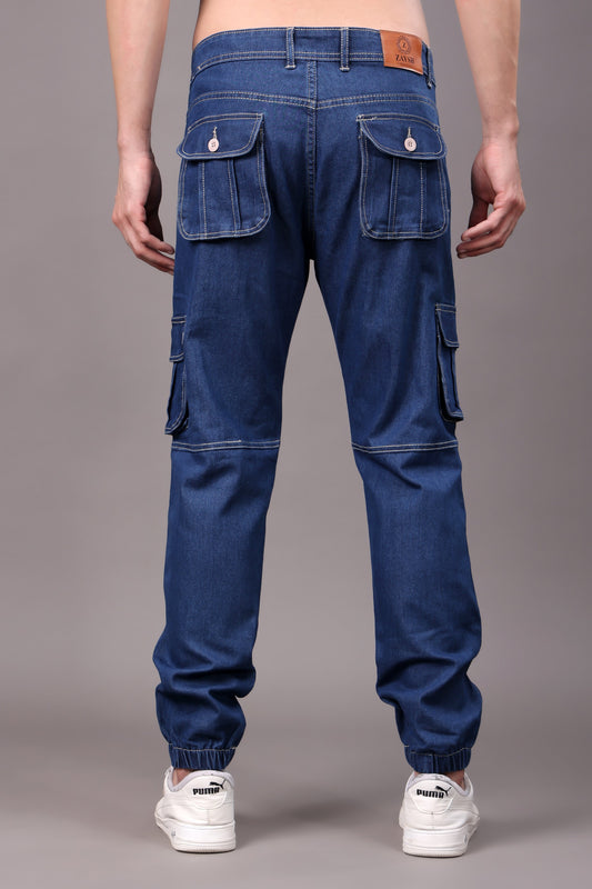 ZAYSH Men Regular fit Mid Rise Blue Cargo Pants (JOG-DEN-D1-6P)