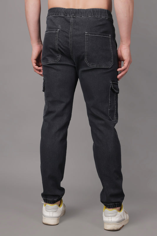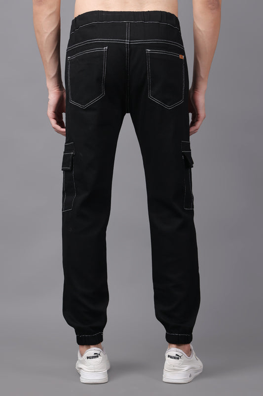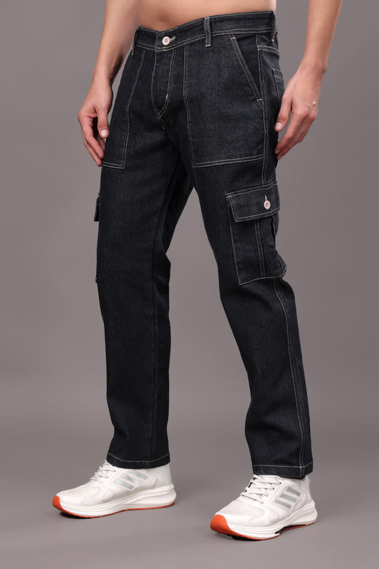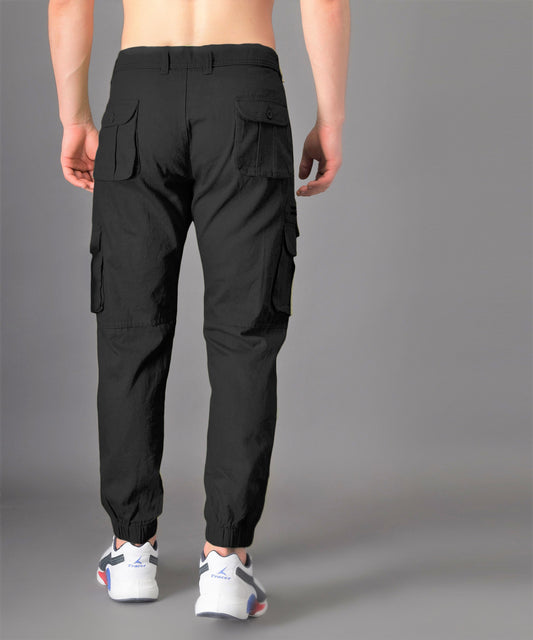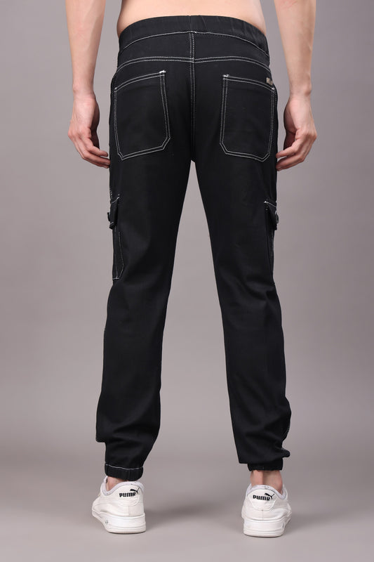 ZAYSH Men Regular fit Mid Rise Black Cargo Pants (JOG-DEN-6P-02)