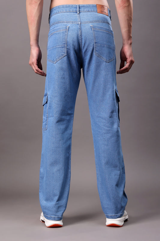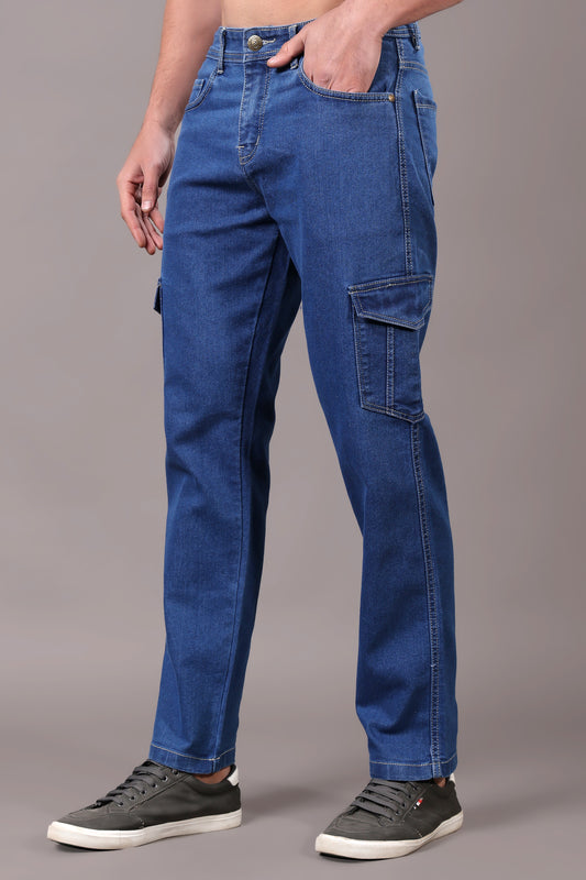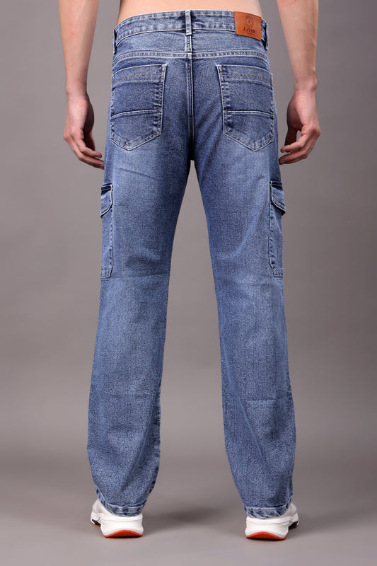 ZAYSH Men Regular fit Mid Rise Blue Cargo Pants (CAR-Denim-Blue)