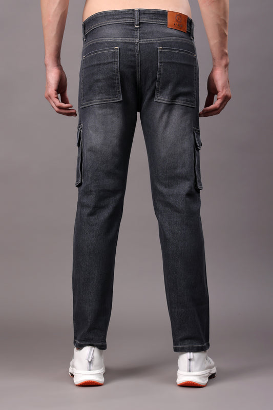 ZAYSH Men Regular fit Mid Rise Dark Grey Cargo Pants (JOG-DEN-6P)