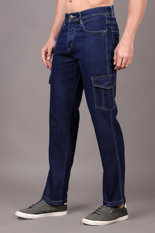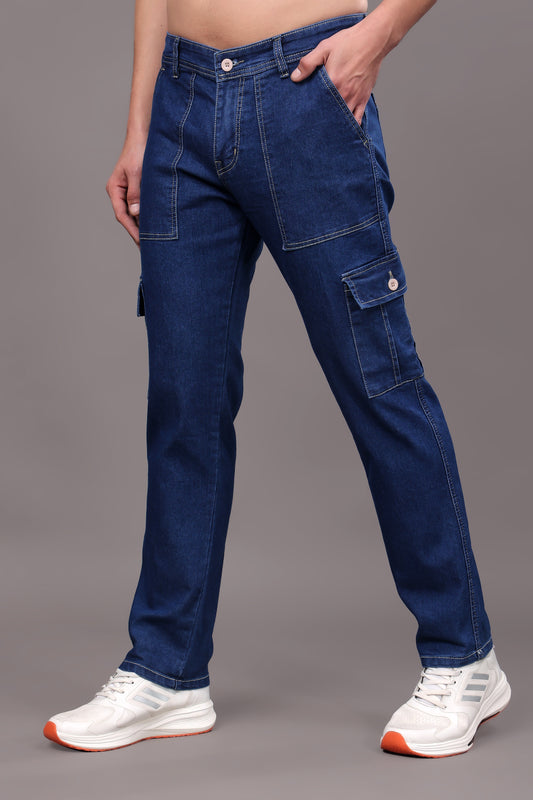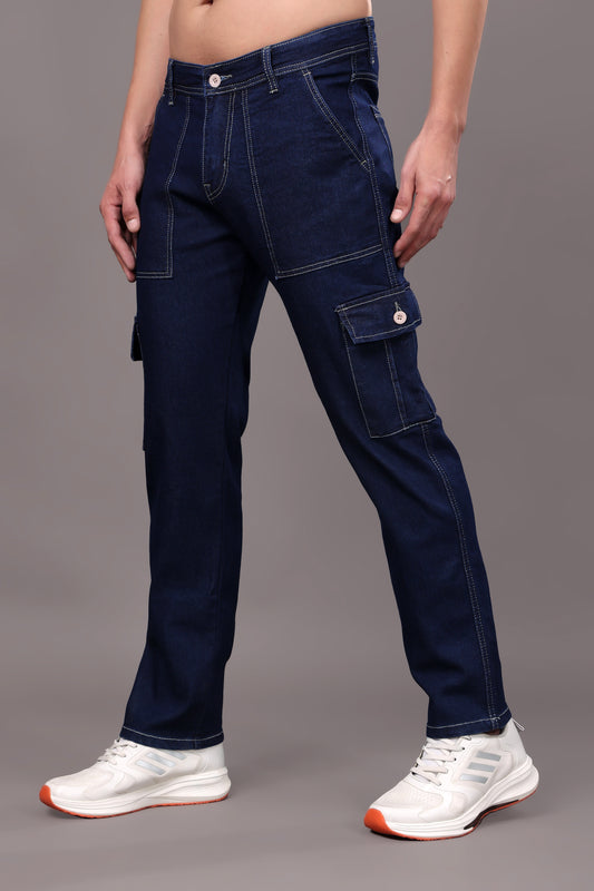 ZAYSH Men Regular fit Mid Rise Dark Blue Cargo Pants (CAR-Denim)